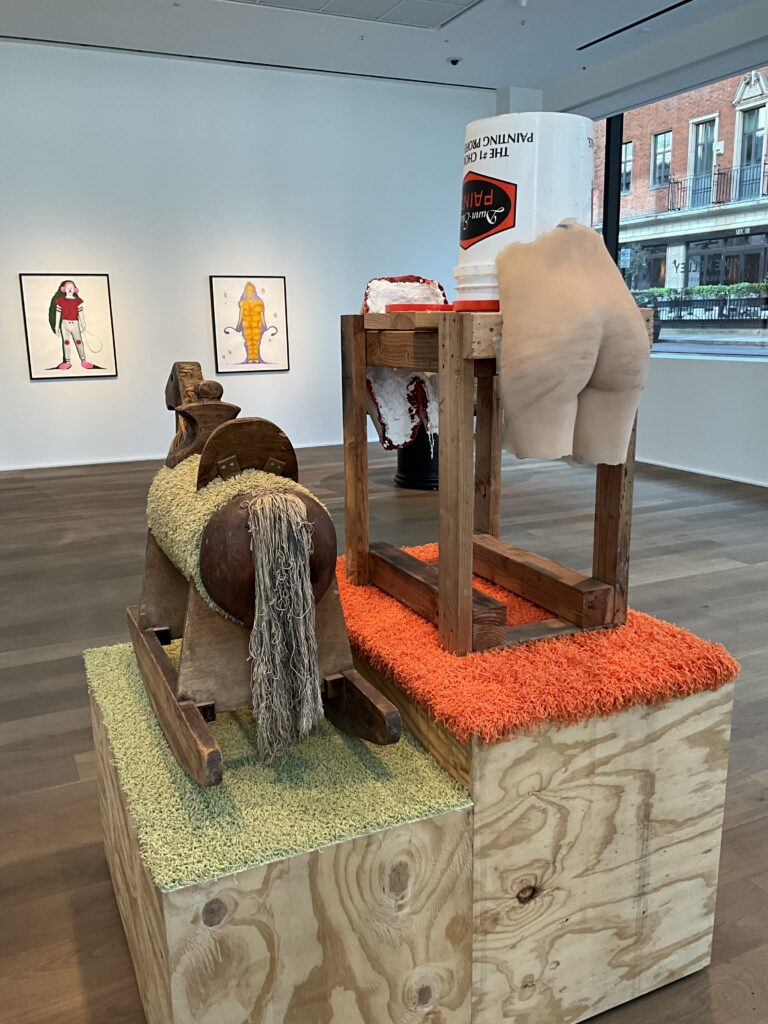 My next destination was Hauser and Wirth on Savile Row. I wanted to see an exhibition by the late artist Mike Kelley, titled ‘Extracurricular Activity Projective Reconstruction #36 (Vice Anglais)’. This work followed on from Kelley’s major artwork ‘Educational Complex’ (made in 1995), which comprised an architectural model of all the educational institutions he ever attended – rendered from memory. Exploring the public fascination with repressed memory syndrome (the inability to recall traumatic events), Kelley left all the forgotten spaces empty, suggesting some kind of trauma had occurred within these institutions.